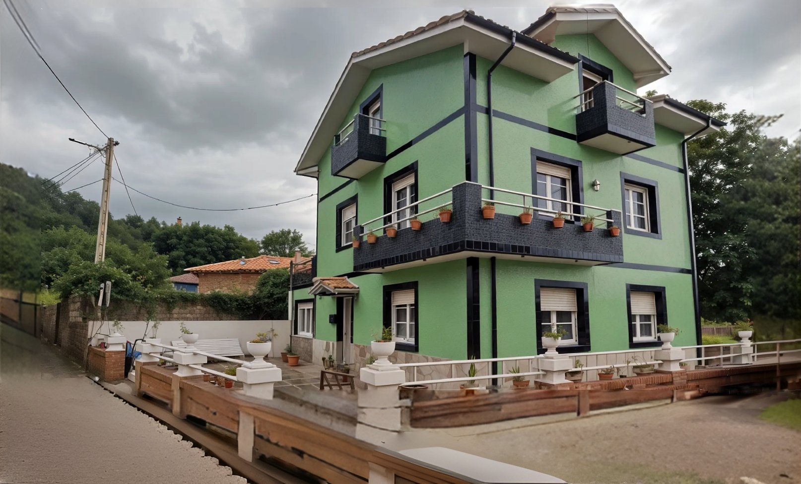 La segunda planta alberga tres luminosas habitaciones y un baño completo, además de contar con dos balcones y una gran terraza, perfectos para disfrutar del aire fresco y las vistas al entorno rural. La tercera planta dispone de otras tres habitaciones.
