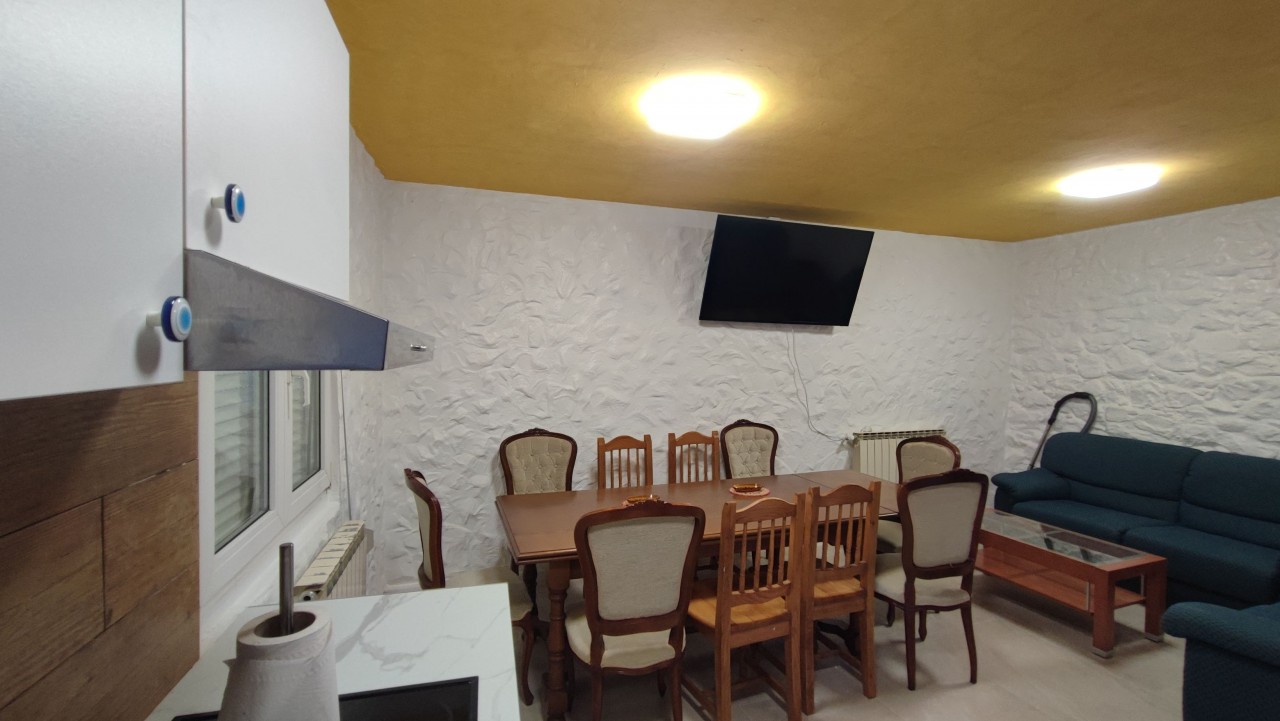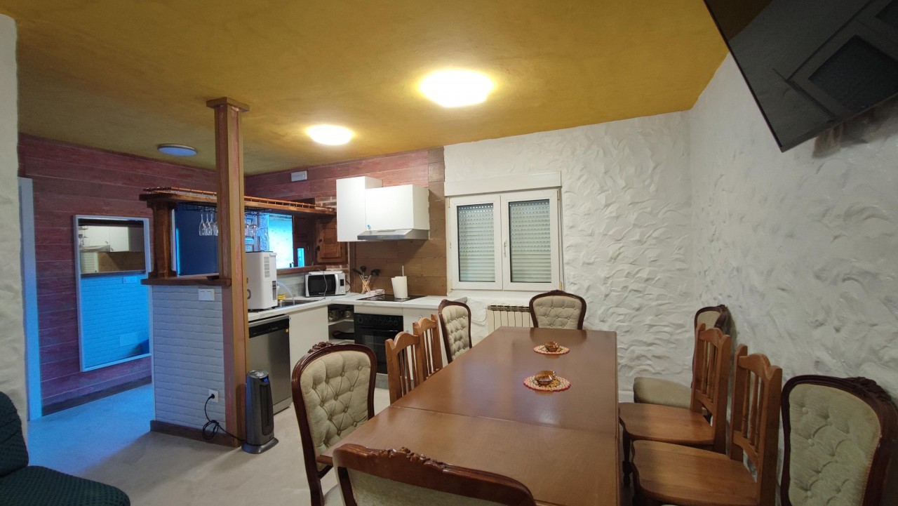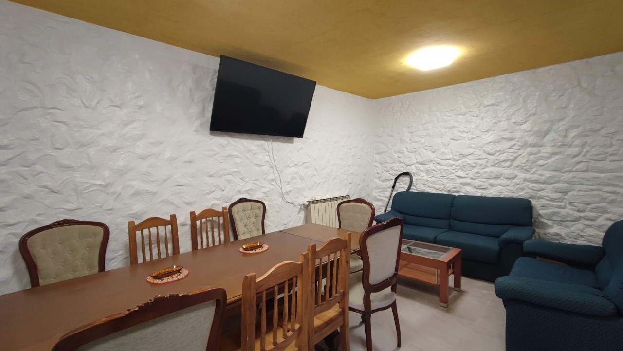 La planta baja cuenta con un luminoso salón ideal para reuniones familiares, una cocina completamente equipada, un baño completo y una habitación, perfecta como dormitorio o espacio multifuncional.
